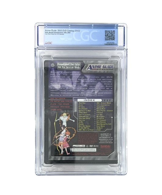 For your consideration is the Anime Guide 2002 Catalog DVD, a Rare promotional screener, Sealed New and professionally graded CGC 9.6 A+.