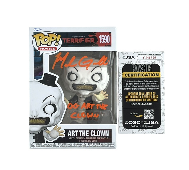 Mike Giannelli originated the role of Art the Clown in the cult horror films including the 9th Circle (2008), Terrifier (2011) and All Hallows’ Eve (2013), helping launch one of modern horror’s most terrifying icons. Though he no longer plays the role, his version of Art remains a fan favorite and has become a rare signature to obtain.