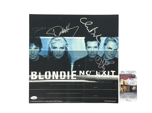 For your consideration is the Blondie Band Signed “No Exit” 14” x 14” Promo Lithograph, Hand Signed by all four members: Debbie Harry, Chris Stein, Clem Burke, and Jimmy Destri. Each signature is fully certified authentic by JSA (James Spence Authentication), with the certification sticker affixed to the lithograph and the matching JSA Certificate of Authenticity card included.