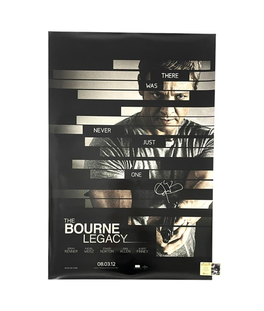 For your consideration is the Bourne Legacy Original 27” x 40” Double Sided One-Sheet Movie Poster that was Hand Signed by Superstar Actor Jeremy Renner himself for his signing with Celebrity Authentics. Also included is the bonus Celebrity Authentics COA Photo Card showing Jeremy signing these posters.