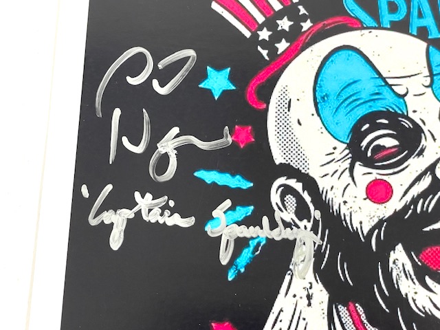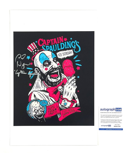 For your consideration is the Sid Haig Autographed 11×13 poster (overall size 11×17 inches), featuring his iconic portrayal of Captain Spaulding from House of 1000 Corpses. This poster also represents his roles in The Devil’s Rejects and 3 From Hell, making it a must-have for fans of Sid Haig and horror collectors.