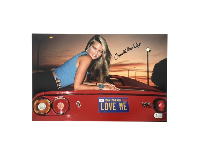 For your consideration is the Christine Brinkley Autographed 11” x 17” Photo, hand signed in a beautiful, clean signature. This stunning studio shot features Christine alongside the iconic Ferrari from National Lampoon’s Vacation — an instantly recognizable image tied to one of the most memorable scenes in the film.