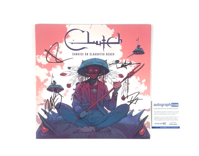 For your consideration is the Clutch Autographed “Sunrise on Slaughter Beach” Original First Pressing Vinyl Album, hand-signed by all four members of the band: Neil Fallon, Tim Sult, Dan Maines, and Jean-Paul Gaster.