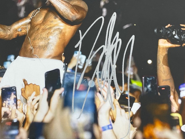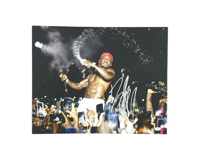DaBaby’s signature comes certified authentic by JSA Authentication. The certification hologram is affixed to the item, and the matching Certificate of Authenticity is included. The signature is fully verifiable in the JSA database.