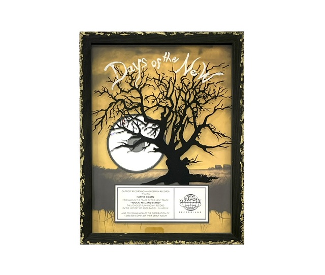 For your consideration is the Days of the New Record Industry CD Award, created for the making of the band’s landmark track “Touch, Peel and Stand”—the longest-running Number One song in the history of rock radio at the time, holding the top spot for an incredible 16 weeks. This award also commemorates the distribution of one million copies of their self-titled debut album by Outpost Recordings.