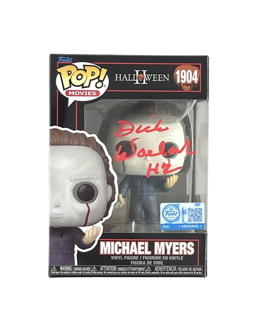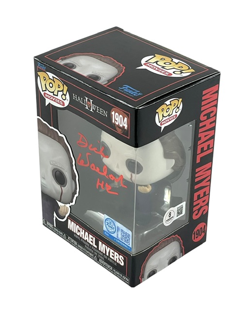 For your consideration is the Dick Warlock Autographed Michael Myers Limited Edition Scare Fair Funko Pop #1904 from Halloween II, hand signed by actor Dick Warlock, who portrayed Michael Myers in the 1981 classic sequel. The signature displays cleanly on the box, making this a standout horror display piece tied directly to the Halloween franchise.