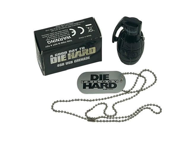 Die Hard Promo Lot Trilogy Dog Tag and Zip Drive Prop Grenade Bruce Willis