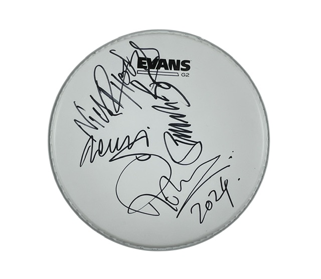 For your consideration is the Duran Duran Autographed 10” Drumhead, hand signed by all four members of the band: Simon Le Bon, Nick Rhodes, John Taylor, and Roger Taylor. All four signatures are clearly visible, making this a complete band-signed display piece from one of pop music’s most influential groups.
