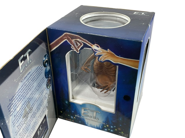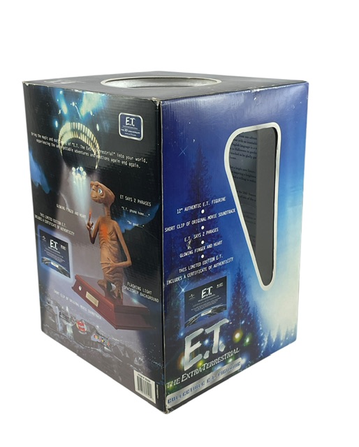 For your consideration is the E.T. The Extra-Terrestrial 20th Anniversary 12” Collectible Figure, a Limited Edition release from 2001 by WowWee. This licensed reproduction of the iconic character features light-up and sound effects and remains housed in its original unopened box. This version was issued as a Toys R Us Exclusive.