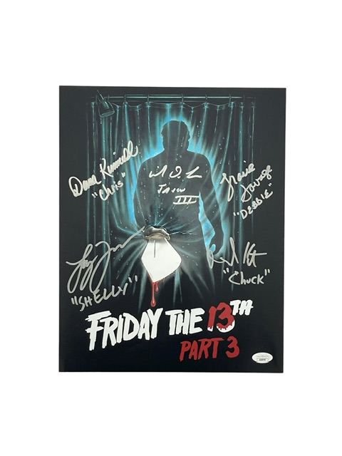 For your consideration is a Friday the 13th Part 3 Autographed 11” x 14” Photo hand-signed by five cast and crew members from the 1982 film. All signatures were obtained in person and the item comes certified authentic by JSA Authentication Services.