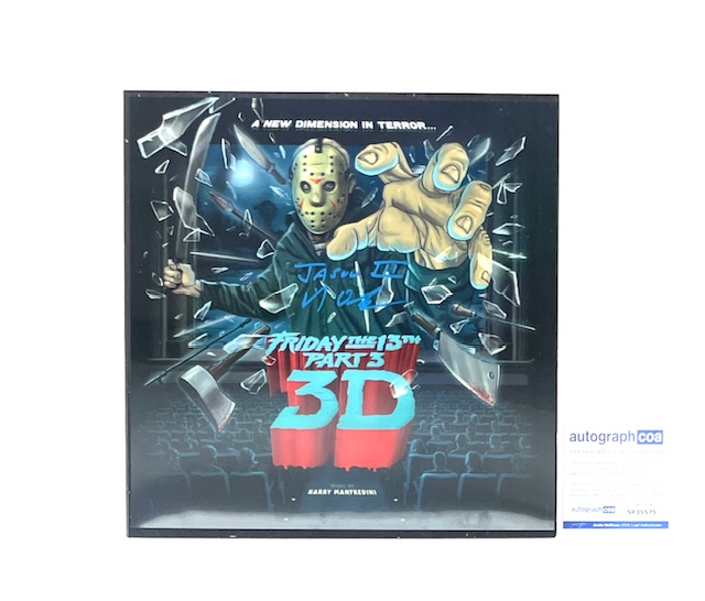 For your consideration is the ultra-rare Friday the 13th Part 3 Autographed Waxwork Records Limited Edition Colored Double Vinyl Record Album Set, hand signed by Mike DeLuna, actor/stuntman and one of the first performers to portray Jason Voorhees wearing the iconic hockey mask.