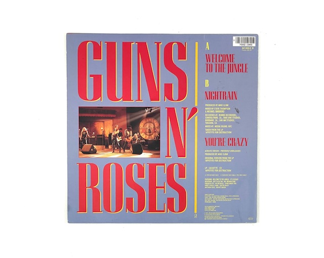 This scarce Limited Edition 12-Inch Vinyl was manufactured in Germany and has long been out of print. It features three tracks: āWelcome to the Jungle,ā āNight Train,ā and āYouāre Crazy,ā including the previously unreleased acoustic version of āYouāre Crazyā at the time of release. This pressing is widely regarded as one of the most visually striking and iconic record covers in the bandās catalog.