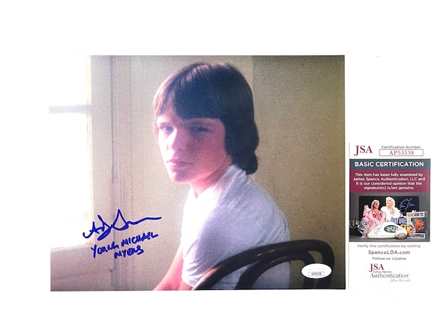 Adam Gunn portrayed Young Michael Myers in the 1981 film Halloween II. This photo was Hand Signed at the H45 event.