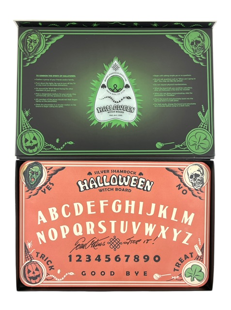 The Official Halloween III: Season of the Witch Witch Board is packaged as if produced by the Silver Shamrock company from that infamous Halloween. Includes a glow-in-the-dark board and planchette in a themed collector’s box.