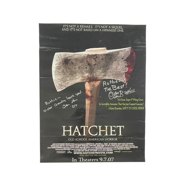 For your consideration is the Hatchet Autographed Original 17” x 22” Promo Poster, Hand Signed by the late great FX Legend John Carl Buechler and filmmaker Adam Green.