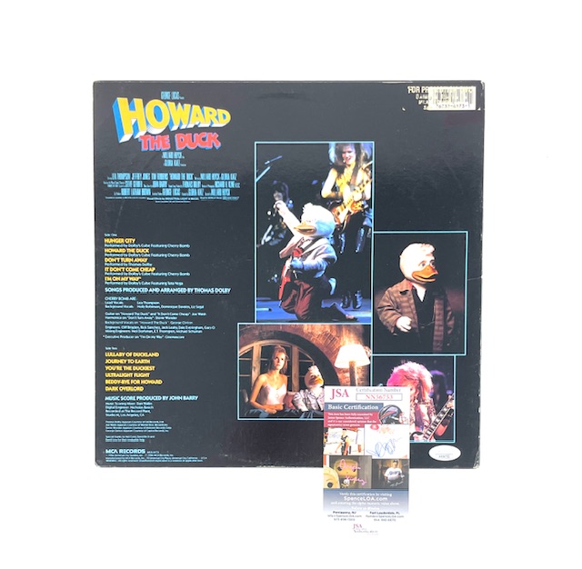Ed Gale performed in the Howard the Duck suit in the film, while Tim Rose contributed as a puppeteer, making this an exceptional dual-signed piece from two key contributors to the production. This is a highly difficult combination to obtain, especially on the original gold stamped promo vinyl pressing, of which very few were produced.
