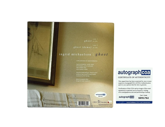 For your consideration is the Ingrid Michaelson Autographed Ghost Limited Edition 7-Inch Vinyl. This early release is very rare and out of print. The record has been hand-signed by Ingrid Michaelson.