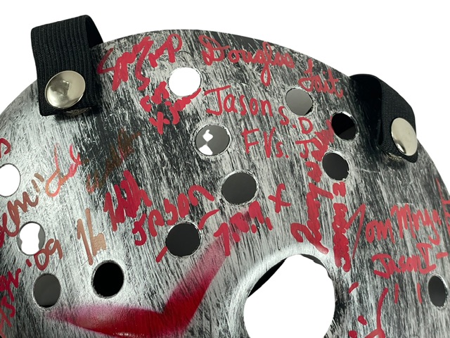 This is, essentially, the most complete Jason character-related mask in existence, representing over four decades of Friday the 13th legacy in one display-worthy piece. Only a handful of these exist. The mask is in good condition overall with minor handling wear from travel and signing over the course of three years.