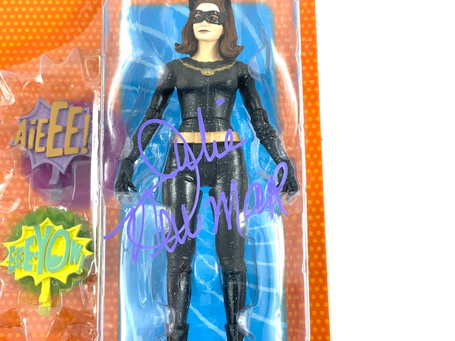 Julie Newmar’s signature comes certified authentic by Beckett Authentication Services (BAS). Beckett representatives were on hand to witness the signing. The certification sticker is affixed to the figure. The signature is fully verifiable in the Beckett online database.