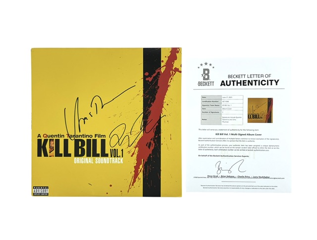 Quentin Tarantino and Uma Thurman’s signatures come certified authentic by Beckett Authentication Services. A full Letter of Authenticity is included, and the signatures are fully verifiable through Beckett Authentication.
