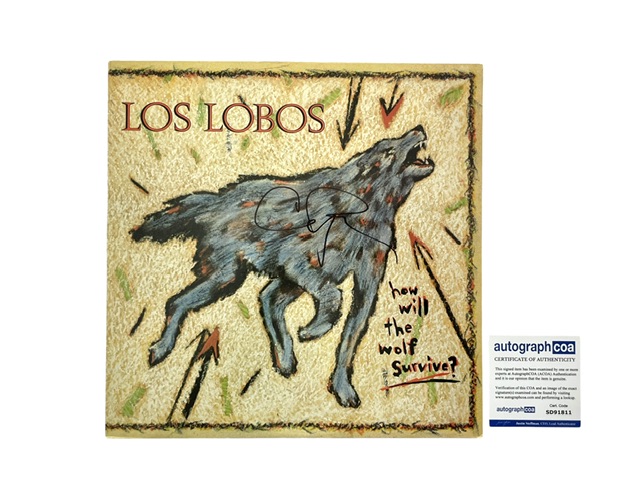 For your consideration is the fantastic Los Lobos Autographed “How Will The Wolf Survive” Vinyl Album Record that is hand signed by the Legendary Guitarist Cesar Rosas.