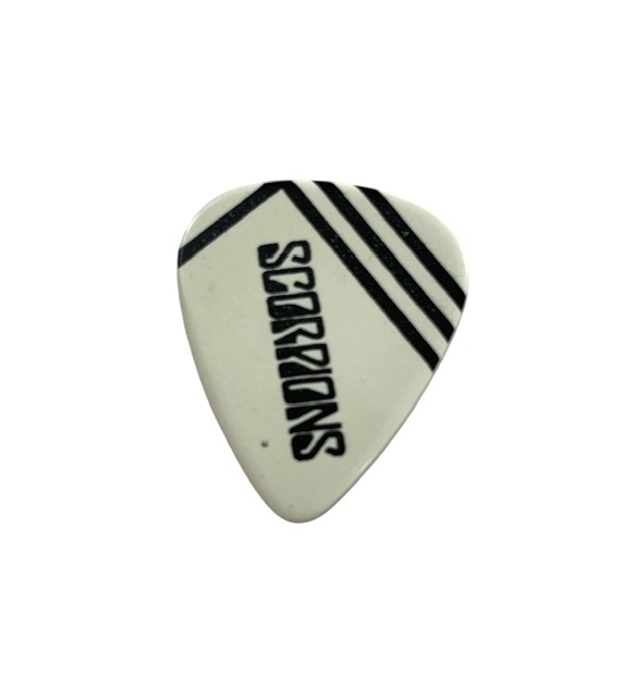 For your consideration is an authentic Matthias Jabs Tour Issued Guitar Pick from the Scorpions, obtained directly from the band or crew. This is an Original pick issued for real live use — RareTracks never sells reprints.