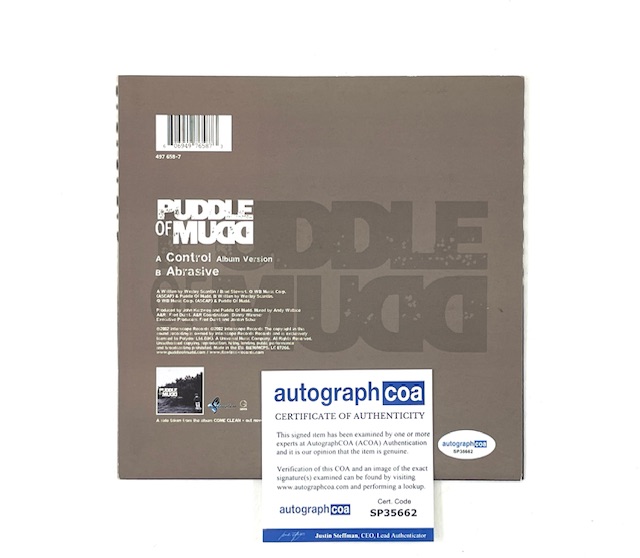 For your consideration is the Puddle of Mudd Autographed Limited Edition U.K. 7-Inch Vinyl Record (Control), hand signed by Lead Vocalist Wes Scantlin.
