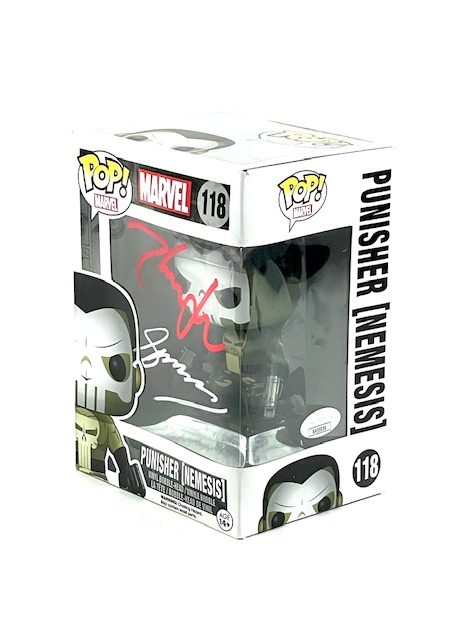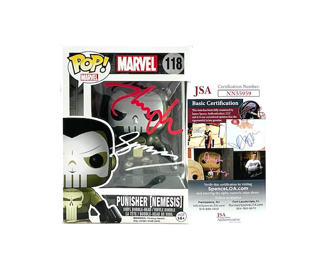 Thomas Jane’s and Gerry Conway’s signatures comes Certified Authentic by JSA Authentication Services. The certification sticker is affixed to the Funko Pop, and the matching JSA Certificate of Authenticity card is included. The signature is fully verifiable in the JSA database.