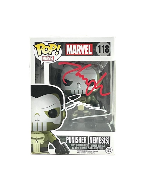 For your consideration is the Punisher Autographed Funko Pop that was Hand Signed by Legendary Creator Gerry Conway, and also features the addition of Thomas Jane, who portrayed Frank Castle in the The Punisher. This is an extremely rare combo piece, with even Thomas expressing surprise at seeing an item like this brought together.