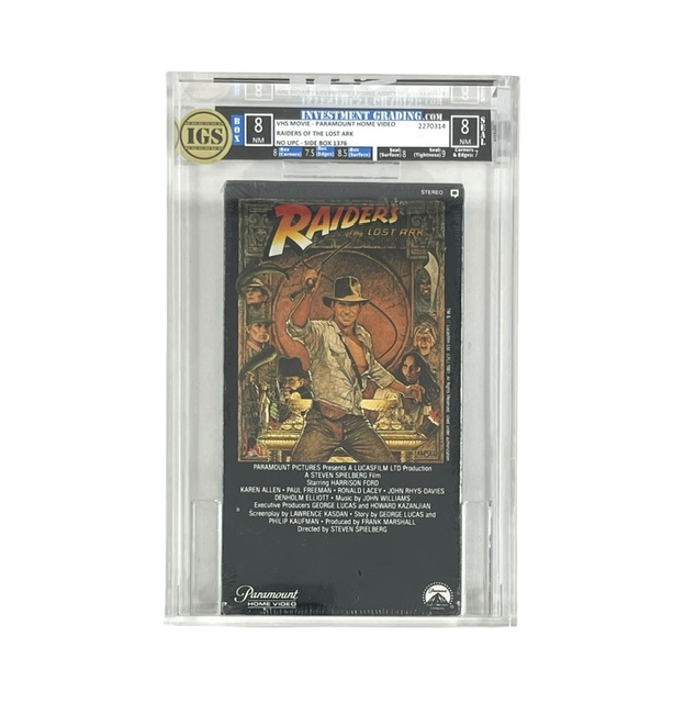For your consideration is the Raiders of the Lost Ark VHS Tape, an exceptional Graded example of the iconic Indiana Jones film starring Harrison Ford. Professionally Graded and Encapsulated by IGS, this piece has earned a strong overall grade of 8.