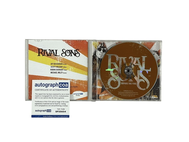 For your consideration is the Rival Sons Autographed “Before the Fire“ CD, hand signed by vocalist Jay Buchanan, guitarist Scott Holiday, bassist Dave Beste, and drummer Michael Miley. The booklet has been beautifully signed by the full band, making this a complete and highly desirable example.