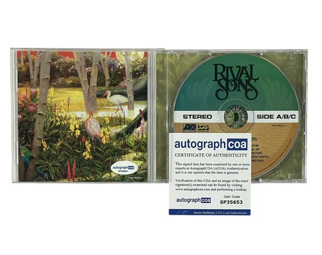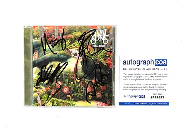 For your consideration is the Rival Sons Autographed “Feral Roots” CD, hand signed by vocalist Jay Buchanan, guitarist Scott Holiday, bassist Dave Beste, and drummer Michael Miley. The booklet has been beautifully signed by the full band, making this a complete and highly desirable example.