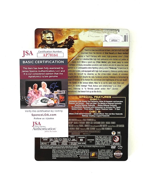 For your consideration is the fantastic Robocop Autographed Steelbook DVD that was Hand Signed by the Legendary Recluse S.D. Nemeth during our private signing. S.D. added the infamous “I’ll Buy That For A Dollar” quote. Certified by JSA Authentication Services. After years of attempts and dead ends, we were able to finally locate the Legendary Recluse S.D. Nemeth. As Robocop continues to gain popularity in pop culture, so does S.D.’s infamous “I’ll Buy That For A Dollar” quote. Great condition