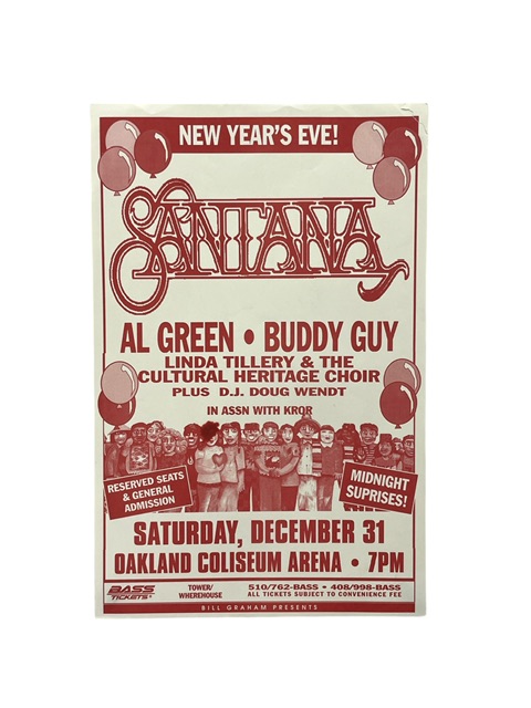 For your consideration is the rare Santana/Al Green/Buddy Guy New Years Eve Concert Poster from the Oakland Coliseum in Oakland, California, 12-31-1994.