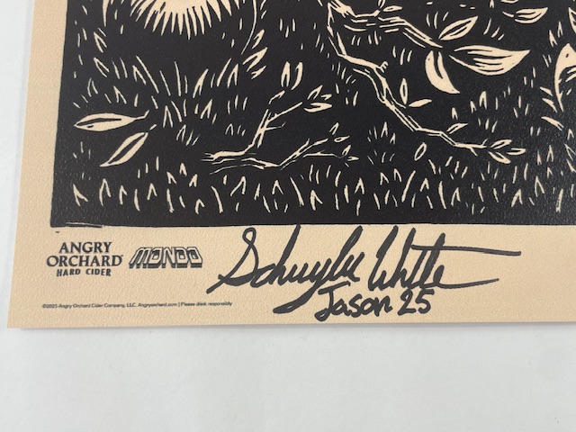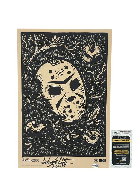 For your consideration is the Schuyler White Autographed ultra rare Sweet Revenge Mondo San Diego Comic Con Exclusive 11” x 17” Lithograph Poster that was Hand Signed the first actor to portray Jason Voorhees in the franchise since 2009. After years of litigation, the Friday the 13th universe is finally back, and Schuyler made his debut in the short film Sweet Revenge, reintroducing Jason to a new generation of horror fans. Schuyler is set to portray Jason once again in the long-awaited upcoming Friday the 13th movie.