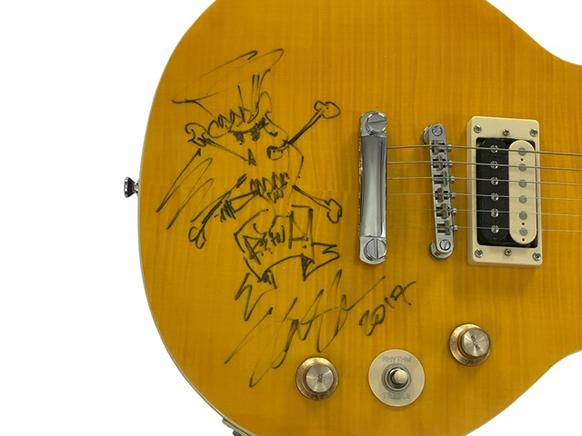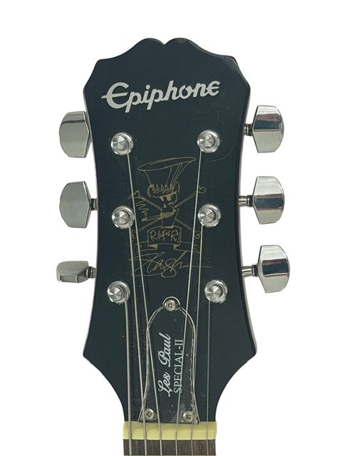 For your consideration is the Slash autographed Les Paul Epiphone Special II Appetite for Destruction model guitar, hand-signed by the legendary guitarist himself. Adding to its rarity, Slash included a full sketch of his iconic skull and crossbones.
