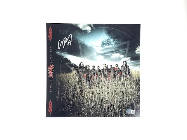 Corey Taylor’s signature comes certified authentic by Beckett Authentication Services (BAS). A Beckett authentication sticker is affixed to the item as it was witnessed by a Beckett representative during the signing. Beckett no longer provides the COA card, and the autograph is fully verifiable in the Beckett Authentication database.