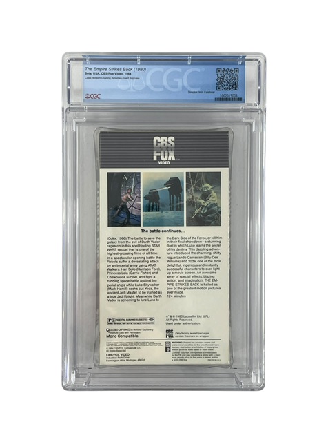 For your consideration is the Star Wars The Empire Strikes Back Betamax Tape Box Only, professionally graded and encapsulated by CGC with a 9.0 grade.