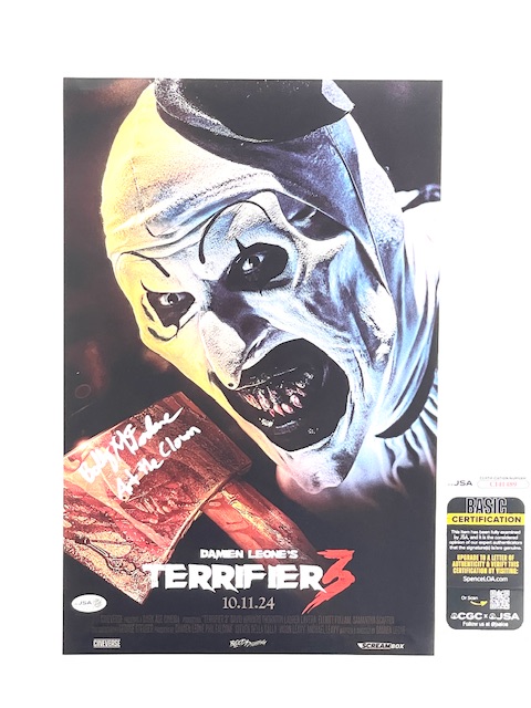 For your consideration is the Bobby McFarlane Autographed 11×17 Poster Print, Hand Signed by the Art the Clown stunt performer from Terrifier 3. Signed during one of his rare convention appearances. Bobby is a martial arts expert and one of the top stunt performers in the industry.