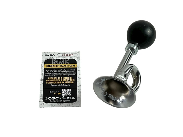 For your consideration is the Bobby McFarlane Autographed Prop Replica Clown Horn, Hand Signed by the Art the Clown stunt performer from Terrifier 3. This was signed during one of his rare convention appearances. Bobby is a martial arts expert and one of the top stunt performers in the industry.