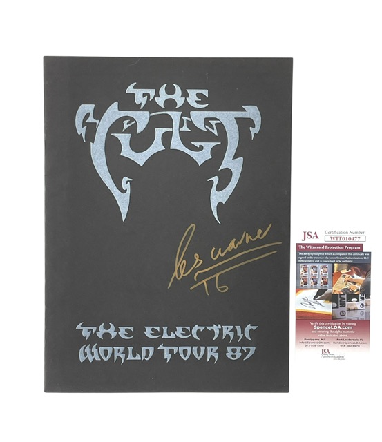 For your consideration is the fantastic The Cult Autographed original “Electric” 1987 World Tour Program that was hand Signed by the Legendary Drummer Les Warner during our private signing. Comes Certified by JSA Authentication Services who were on hand to witness the actual signing. This was the only signing Les has ever done. Program is in fantastic condition for pushing 40 years old.