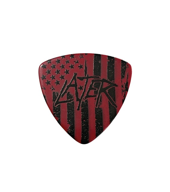 For your consideration is an authentic Slayer Tour Issued Guitar Pick for Tom Araya, obtained directly from the band or crew. This is an Original pick issued for real tour use — RareTracks never sells reprints.