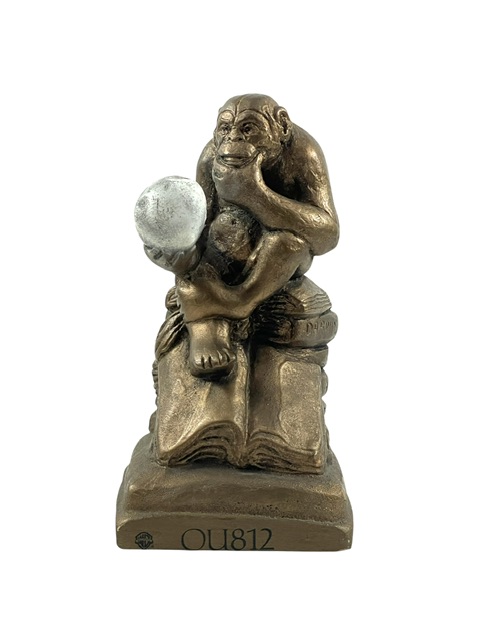 For your consideration is the Van Halen Ultra-Rare OU812 “Darwin Ape” Promotional Statue, obtained directly from Warner Brothers in 1988 to promote the OU812 album. Entitled Darwin Ape and based on Rheinhold’s Philosophizing Monkey, this remarkable sculpture was created by Spanish artist Francisco Ramo and faithfully recreated by Austin Sculpture on behalf of Warner Brothers. Weighing approximately 12 lb (6 kg) and measuring 9½” in height and 5” at the base, this finely crafted piece features the OU812 logo on the base alongside the Warner Brothers logo.