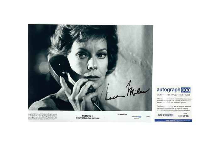 For your consideration is the Vera Miles autographed 8×10 photo from Alfred Hitchcock’s Psycho II. This photo is hand-signed by Vera and comes certified authentic by Autograph COA (ACOA).