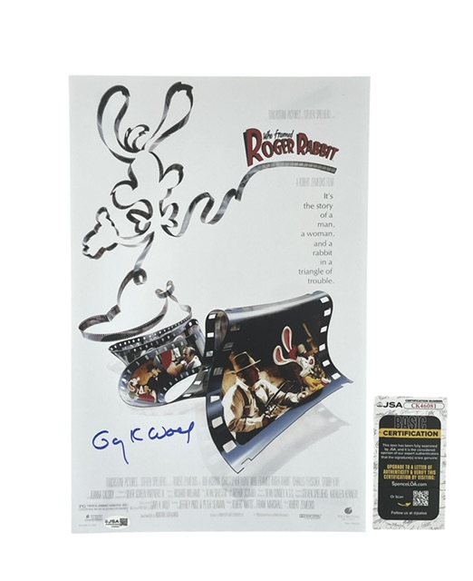 For your consideration is the Who Framed Roger Rabbit Autographed 11” x 17” Poster Print, Hand Signed by the legendary creator of Roger Rabbit, Gary K. Wolf himself.