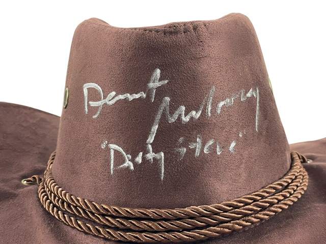 For your consideration is the fantastic Dermot Mulroney Autographed Prop Replica Cowboy Hat from the classic 1988 movie Young Guns, Hand Signed by the Legendary actor Dermot Mulroney. Dermot added his “Dirty Steve” character name. Comes Certified by JSA Authentication Services. New condition.